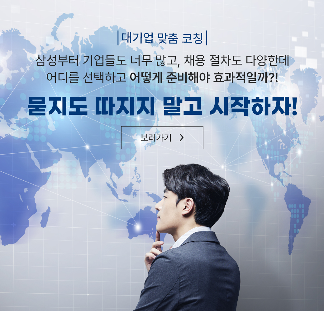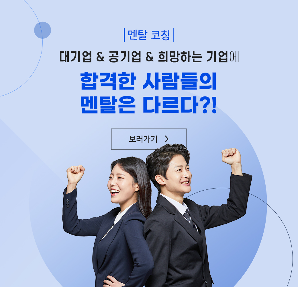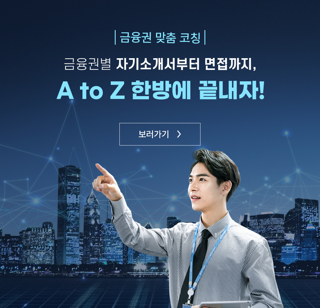 • 금융권 취업 준비만 2년째라 답답하고 막막했는데 코치님 덕분에 원하는 기업에 취업 한번에 했습니다! 코치님 정말 감사드립니다.